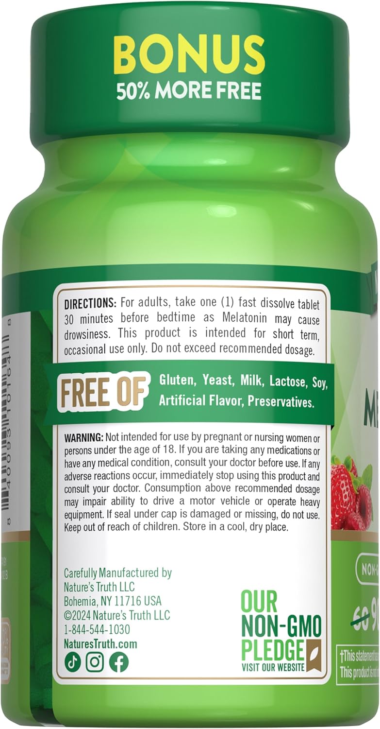 Nature’s Truth Melatonin 5 mg Bonus 60+30 Fast Dis Tabs